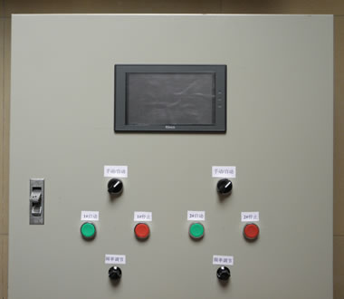 此柜體為落地式,有兩層面板;用工控PLC、及電腦觸屏控制;內(nèi)層面板裝二次電路的控制原件,和不誘鋼模擬流程圖,以便現(xiàn)場(chǎng)操作員,一目了然,該工程的運(yùn)行情況;柜底部開(kāi)電纜進(jìn)出線孔。